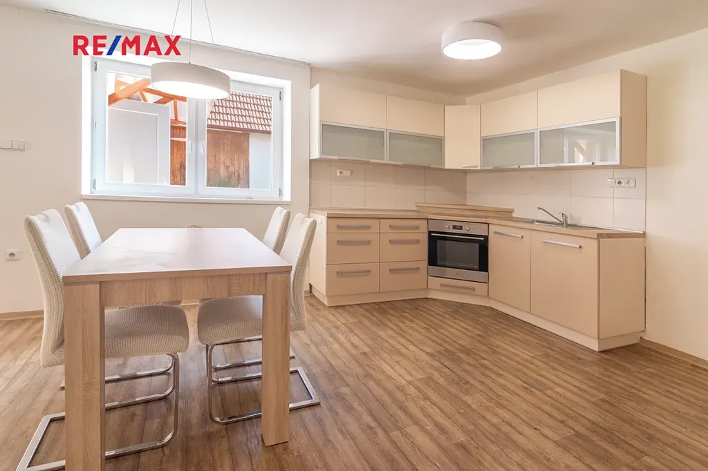 Původní zástavba domu ze smíšeného zdiva (převažuje cihla, část kámen), byla cca před 11 lety postupně rekonstruována do současné podoby. Dispozici 2+kk dominuje obývací pokoj s kuchyní o výměře 43 m2. Nachází se v něm kuchyňská linka na míru, jídelní stůl s židlemi a také kamna, která vám zpříjemní chladnější část roku. Dřevo na několik let pohodlně umístíte do skladu v zadní části domu. A pokud to chcete mít bez starostí, můžete vytápět prostřednictvím elektrických přímotopů.