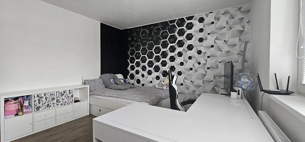 Byt je světlý, moderní a dobře dispozičně řešený.