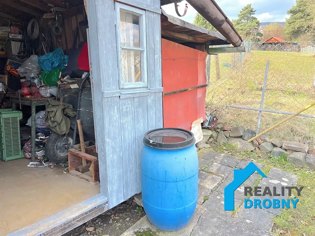 Pozemek je mírně svažitý. Součástí pozemku je dřevěná chata a přístřešek. Střecha je z asfaltových plátů. K dispozici jsou záhony, nádoby na dešťovou vodu, suchý záchod s jímkou.
