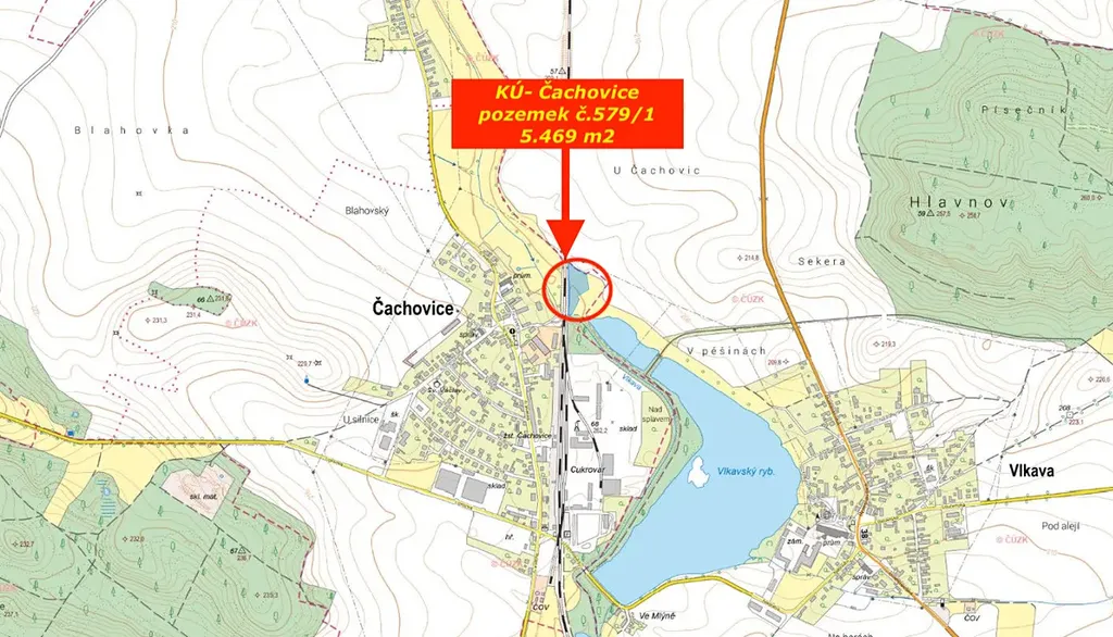 Jedná se o 2 rovinné pozemky parc. 1127, 1128 o výměře 17146 m2 s využitím pro pozemek parc. 1127 jako orná půda s přístupem ze silnice Čachovice – Vanovice. Pozemek parc. 1128 je malý rovinný pozemek uvnitř pozemku parc. 1127, na kterém se nachází skruž s označením veřejného vodovodu vedoucího pod pozemky podél silnice. Pozemky se nachází na jižním vzdáleném okraji obce Čachovice.