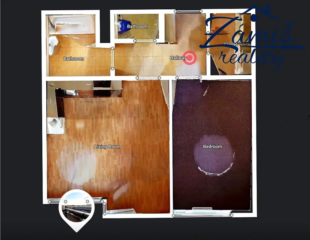 Koberec v ložnici je zcela nový. V pokoji s kuchyňským koutem je položena plovoucí podlaha, v koupelně a chodbě pak keramická dlažba.