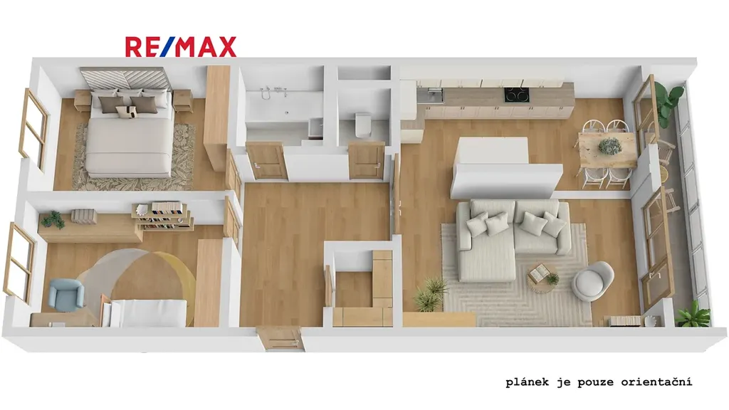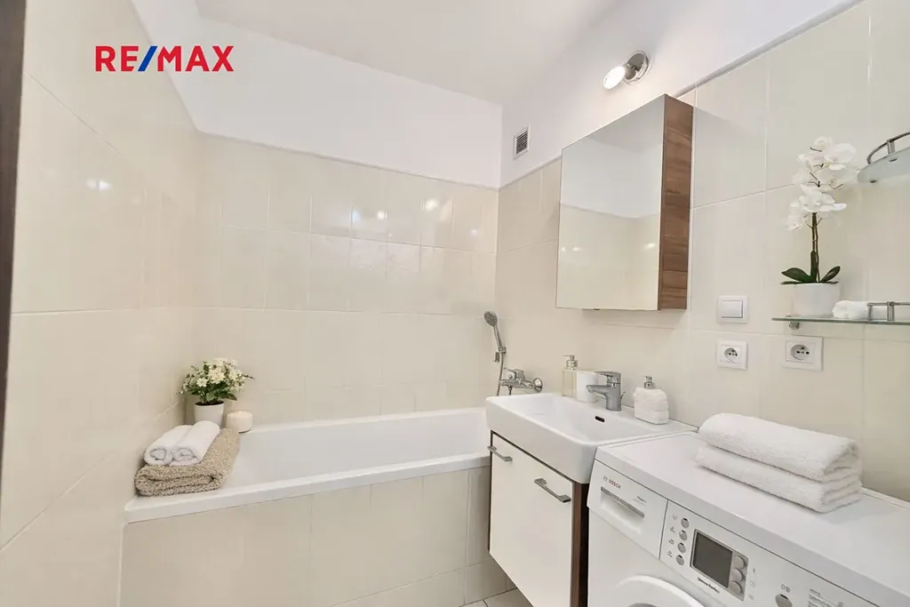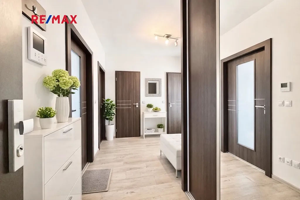 Bytová jednotka prošla v průběhu posledních let podstatnou rekonstrukcí. Zděné jádro s vanou, moderní kuchyňská linka na míru s vestavnými spotřebiči, rekonstrukce podlah s výměnou krytin (vinyl, dlažba, plovoucí podlaha), obložkové zárubně (široké posuvné dveře mezi obývacím pokojem a chodbou), úložné prostory v podobě vestavných skříní a samostatné šatny u vchodových dveří. Plastová okna orientována na východ a na západ.