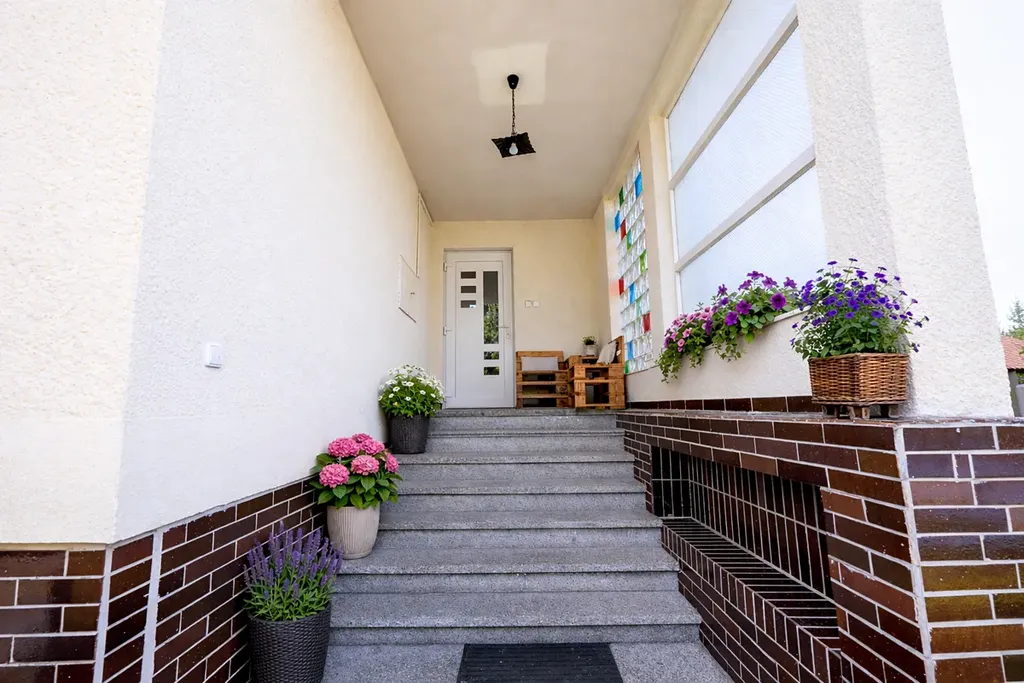 Současná dispozice domu je 5+1, přičemž v podkroví jsou připravené další dva pokoje, které lze jednoduše dokončit. Dům tak můžete kdykoliv rozšířit, nebo ho díky zachovanému původnímu schodišti pohodlně rozdělit na dvě samostatné jednotky – ideální pro více generací nebo pro propojení bydlení s podnikáním.