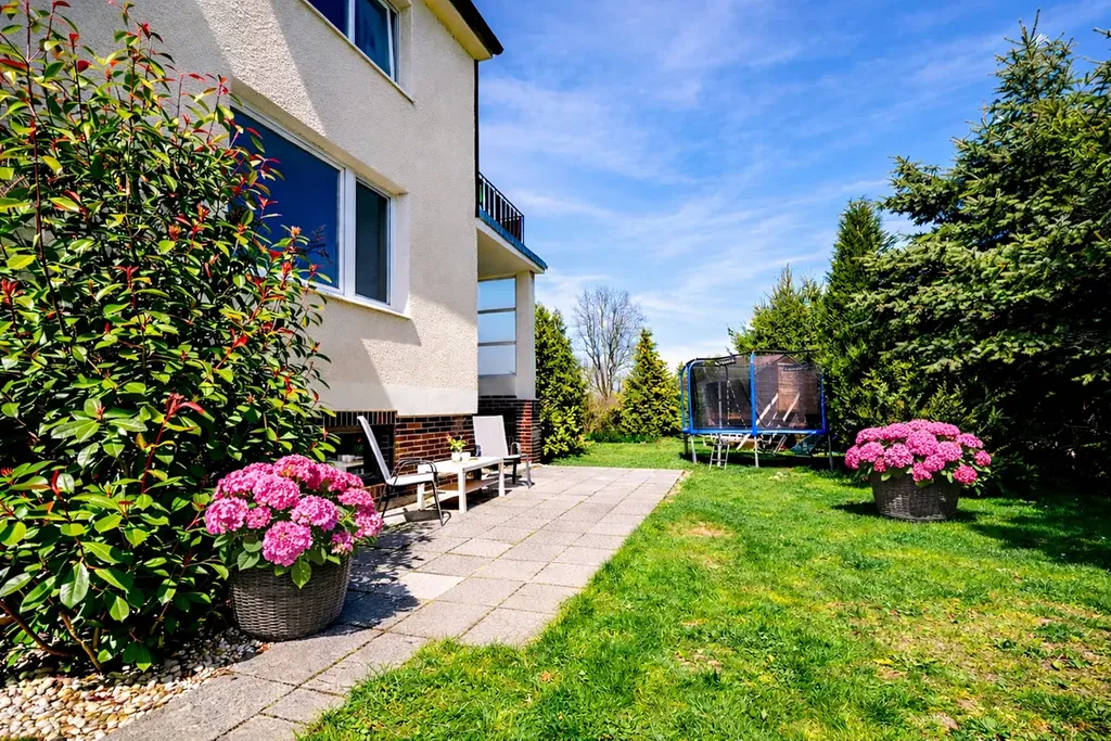 Pozemek o výměře 924 m² je rovinatý, udržovaný a lemovaný vzrostlými stromy, které zajišťují dostatek soukromí.