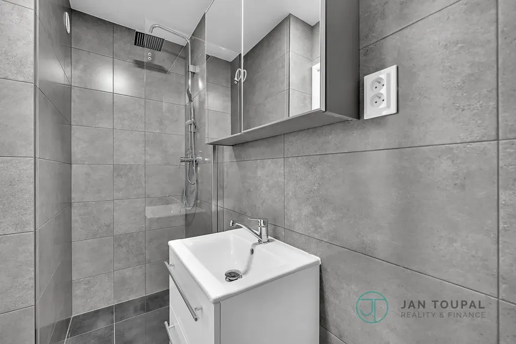 Koupelna: Se sprchovým koutem, místem pro pračku a samostatnou toaletou.