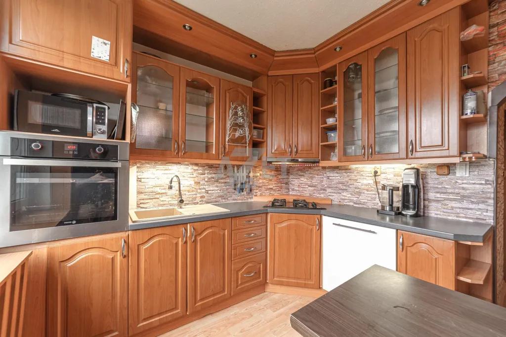 Naše společnost Vám exkluzivně nabízí k prodeji družstevní byt 3+1 (zatím bez možnosti převodu do OV) v 5.NP z osmi. Celková výměra prodávané nemovitosti včetně sklepa činí 77 m2. El. rozvody v mědi. Zděné bytové jádro. Voda a odpady v plastu. Plastová okna s parapety. Podlahy plovoucí s kombinací keramické dlažby. Snížené sádrokartonové podhledy s led světly. Neprůchozí pokoje. Koupelna s rohovou vanou a WC Kombi oddělené příčkou. Rohová kuchyňská linka se spotřebiči. Velká předsíň s komorou. Výhled na 2 světové strany (severovýchod vs jihozápad). Připojení k internetu a TV. K dispozici sklepní kóje a společná kolárna. Bezbariérový přístup. Dostupnost městské hromadné dopravy (5 min. pěší chůzí) a nespočet parkovacích míst. Nabízená nemovitost je k dispozici od poloviny dubna 2026.