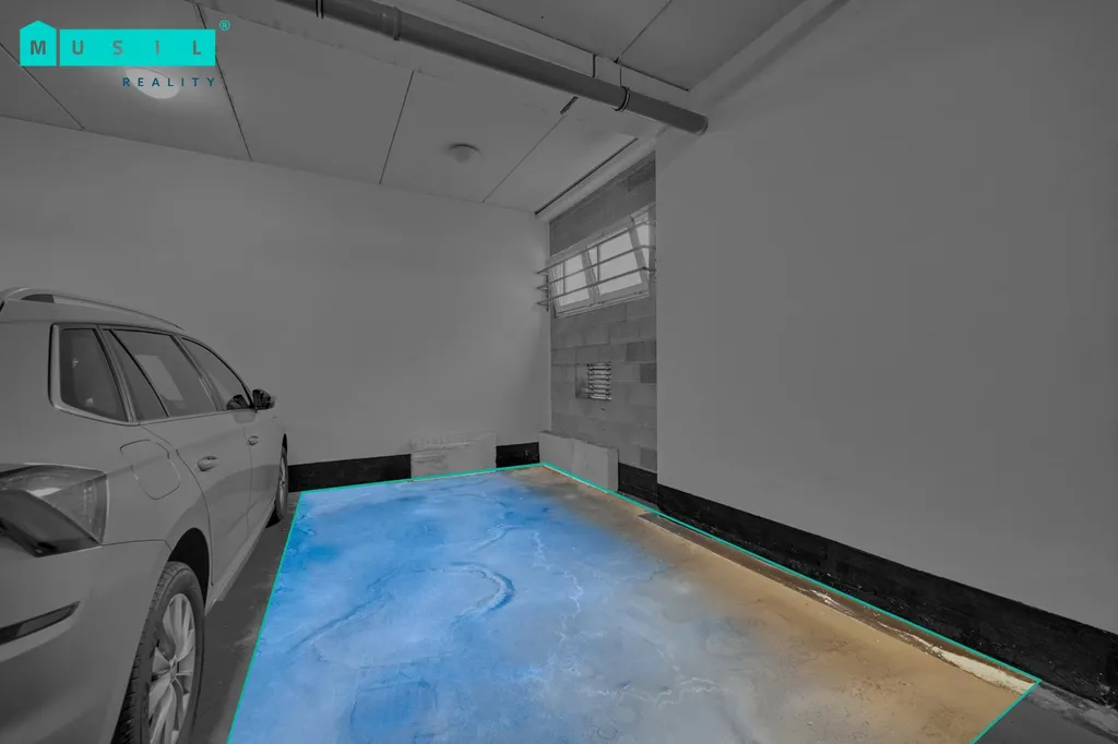 Velkou výhodou je i parkovací stání přímo v domě, které je v ceně nájmu.
