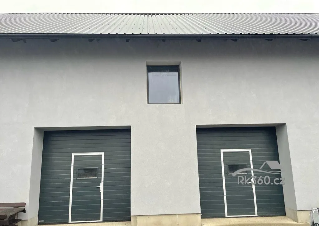 automatická vrata na dálkové ovládání, rozměr 3,3 × 4,2 m, součástí jsou i samostatné dveře
