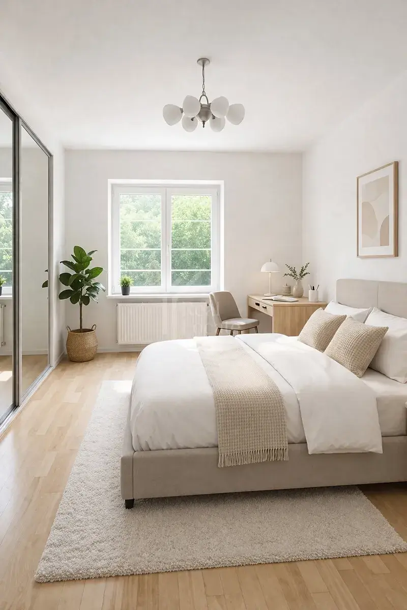 Byt prošel rekonstrukcí a je ve velmi dobrém stavu. Dispozice nabízí praktické rozdělení prostoru s dostatkem soukromí i světla.