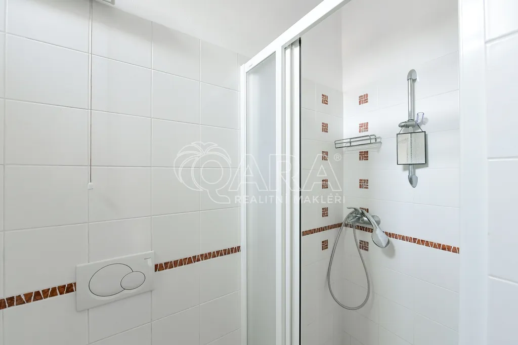 Bytová jednotka sestává z předsíně, první ložnice se vstupem do koupelny s toaletou, obývacího pokoje s kuchyňským koutem a druhé ložnice se vstupem do další koupelny s toaletou. Z předsíně je rovněž vstup na toaletu. Byt je dobře dispozičně řešený a má celkem dvě koupelny se sprchovými kouty a tři toalety.