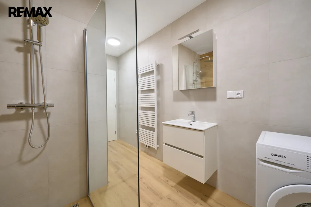 Byt je vybaven moderními technologiemi a prvky pro komfortní bydlení. Samozřejmostí jsou plastová okna s elektricky ovládanými venkovními hliníkovými žaluziemi, rekuperace vzduchu zajišťující zdravé vnitřní prostředí a laminátové podlahy, které dodávají interiéru moderní vzhled a zároveň jsou praktické na údržbu. Jedná se o úplně nový byt v novém domě, ve kterém dosud nikdo nebydlel.