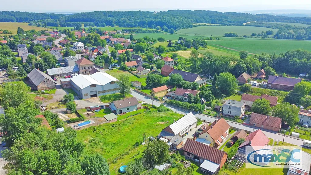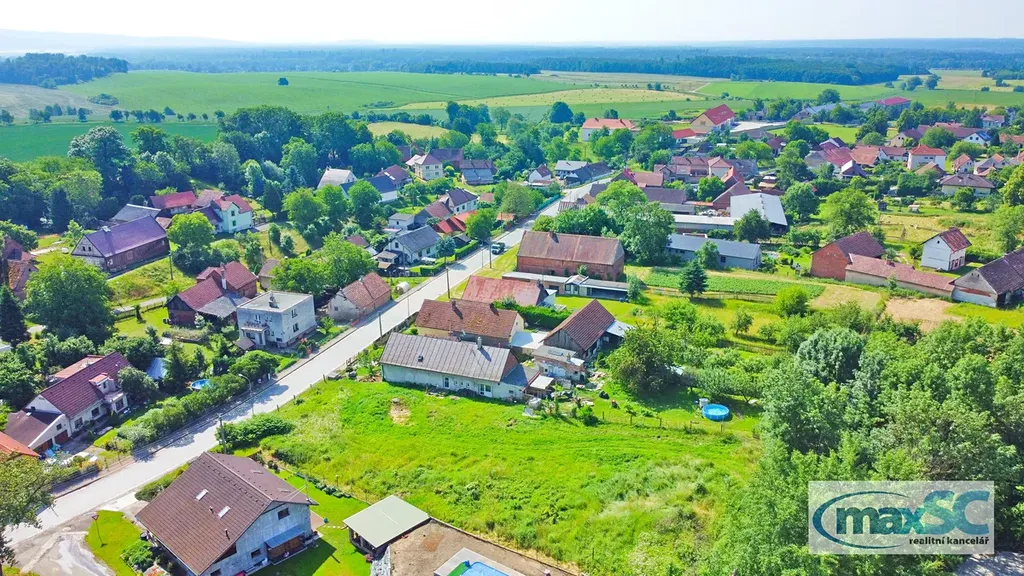 Pozemek se nachází kousek od centra obce, přímo u komunikace protínající obec. Je mírně svažitý, veškeré sítě jsou k dispozici u hranice pozemku s místní komunikací.