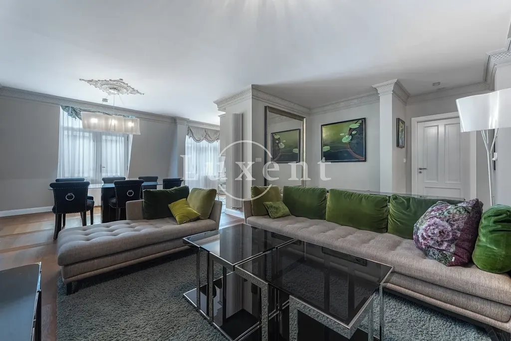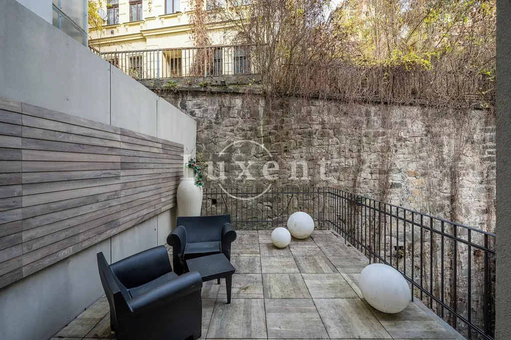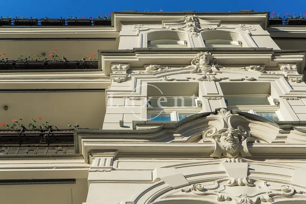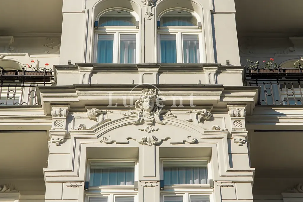 Byty jsou designové, prémiově zařízené italským nábytkem včetně kuchyně, osvětlení i nábytku. Mají své balkony s výhledem na kolonádu nebo klidné terasy s orientací do klidného stylového dvora. Dva z horních bytů jsou mezonetového typu. Z jednoho z bytů ve 2.NP je momentálně velmi příjemné SPA se saunami, odpočívárnou a terasou k užití pro uživatele bytů. V přízemí je úspěšně provozována restaurace. V suterénu je pak technické zázemí. Dům byl postaven v r. 1897 podle karlovarského architekta Karla Hellera. Jako památkově chráněný byl v r. 2016 kompletně zrekonstruován podle italského inženýra Stefana Stramigioli a dokončen architekty ateliéru Soukup.