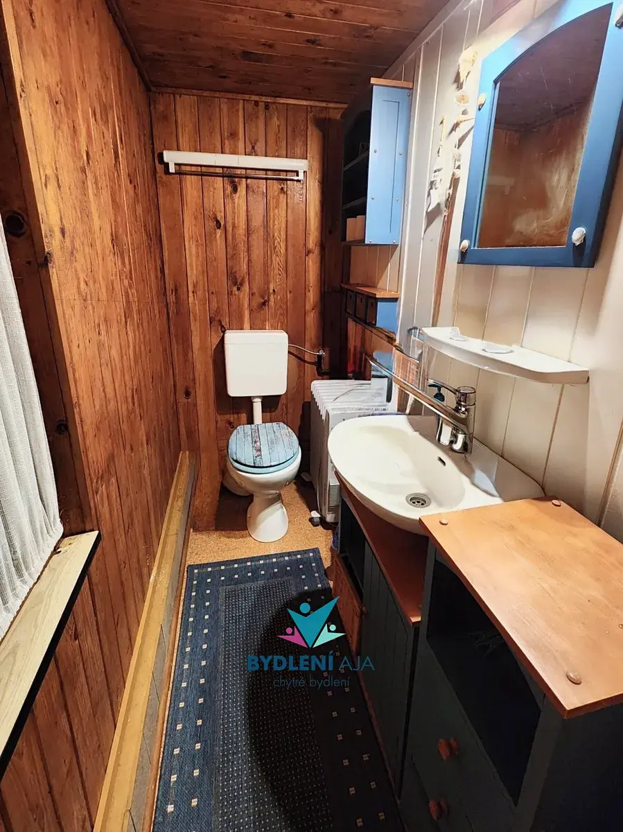 V domku se nachází sprcha, toaleta a kamna na dřevo.