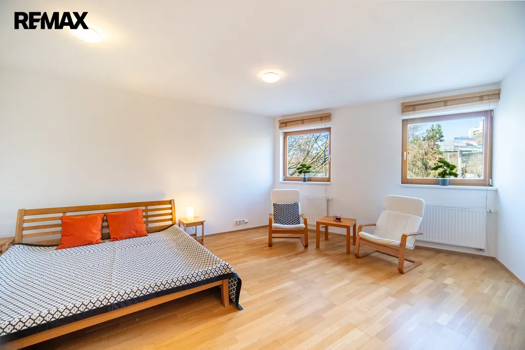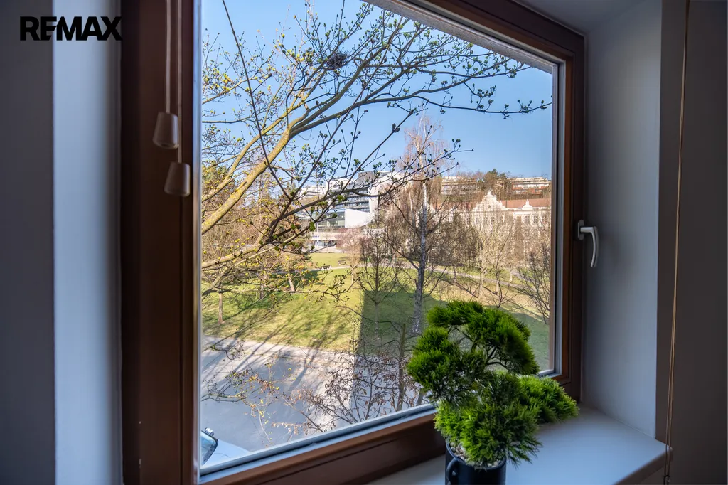 Dominantou tohoto bytu je krásný výhled do zeleně, který dodává bydlení klidnou a harmonickou atmosféru. Díky promyšlenému dispozičnímu řešení a kompletnímu vybavení nabízí byt maximální komfort jak pro jednotlivce, tak pro pár.