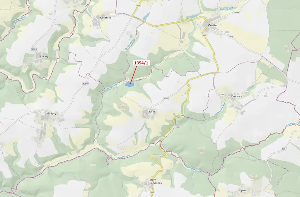 Lesní pozemek o výměře 13 976 m2, parcelní číslo 1354/1, podíl 1/1, katastrální území Kněž u Čestína, obec Čestín, obec s rozšířenou působností Kutná Hora, okres Kutná Hora, Středočeský kraj.