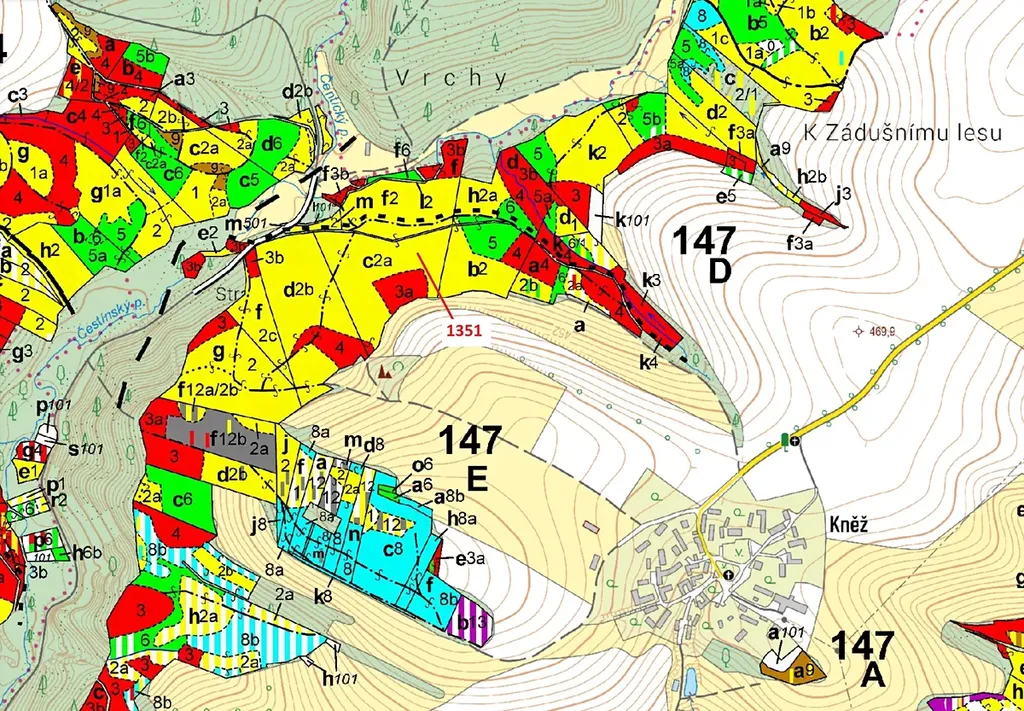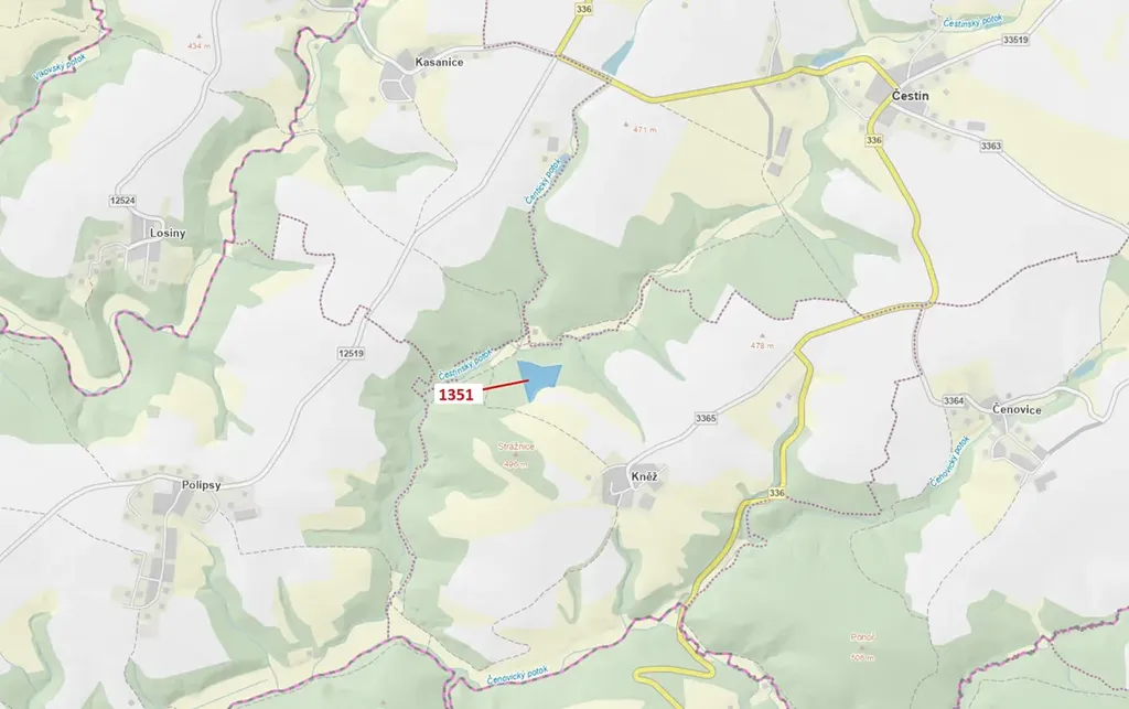 Lesní pozemek o výměře 22 508 m2, parcelní číslo 1351, podíl 1/1, katastrální území Kněž u Čestína, obec Čestín, obec s rozšířenou působností Kutná Hora, okres Kutná Hora, Středočeský kraj.