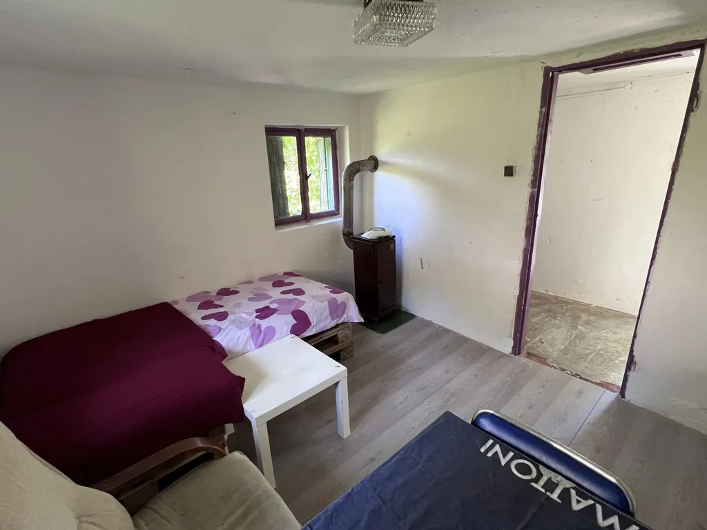 Hlavní zděná chata se zděným základem a částečným podsklepením. Uvnitř se nachází předsíň a obytný pokoj s kamny, které vytvářejí příjemnou atmosféru během chladnějších dnů. Objekt je napojen na elektřinu.