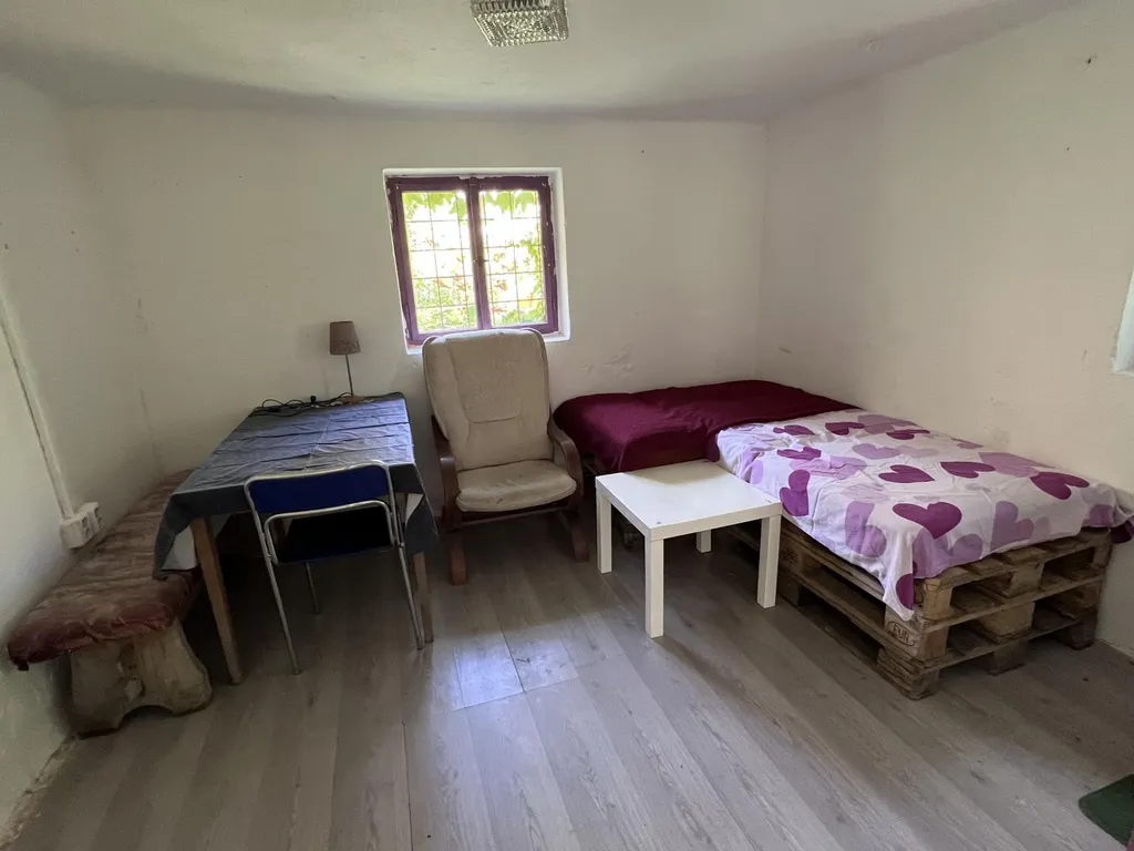 Menší samostatná chatička umístěná ve spodní části pozemku, využívaná jako letní pokoj nebo prostor pro přespání.