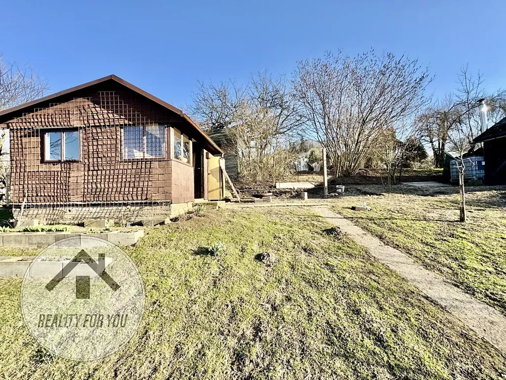 V horní části je stavba dřevěné chatky, která prošla kompletní rekonstrukcí. Nabízí velkou obytnou místnost obloženou sádrokartonem se vstupem do sklepa (chatka je celá podsklepena), menší skládek, úložný prostor pod střechou a menší terasu. Do chatky je přiveden elektrický proud (fotografie prozatím nejsou pořízeny jelikož se chatička vyklízí).