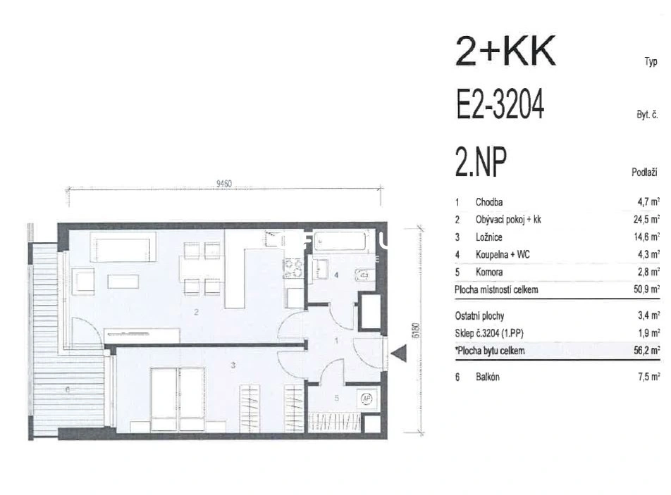 Nabízíme k pronájmu byt o dispozici 2+kk s prostorným balkonem v novostavbě bytového domu na ulici Smržových.