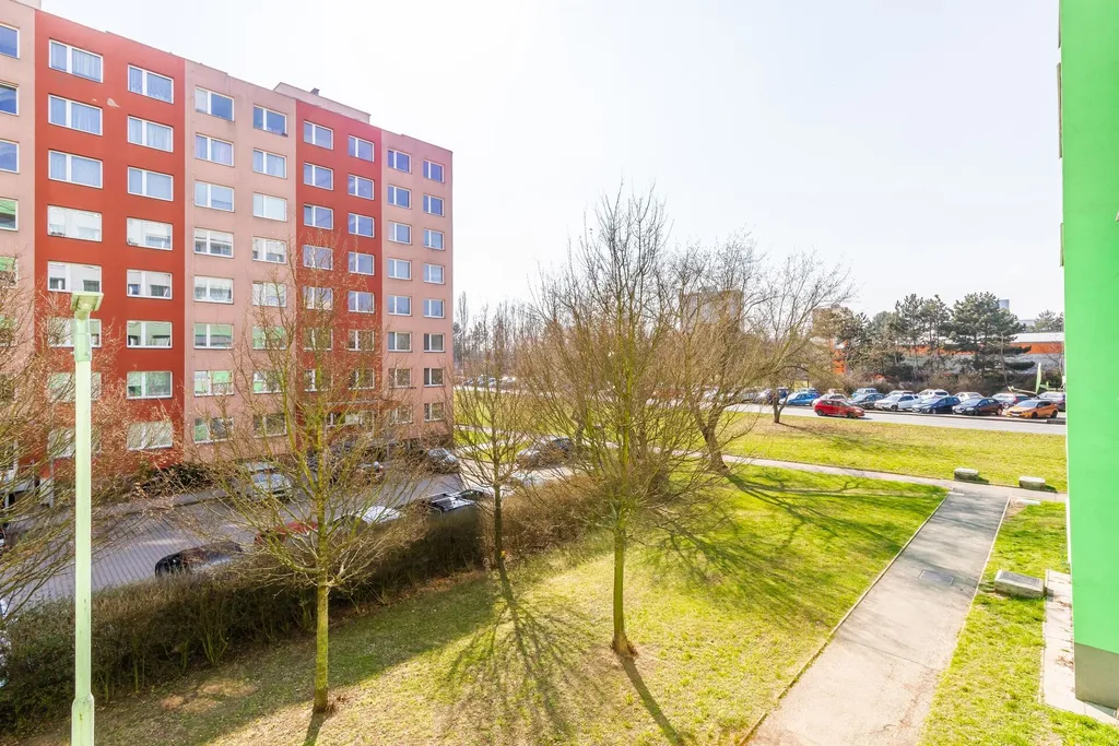 Další výhodou je komora umístěná mimo byt na chodbě, která rozšiřuje úložné možnosti. K bytové jednotce náleží také sklepní kóje v suterénu panelového domu.