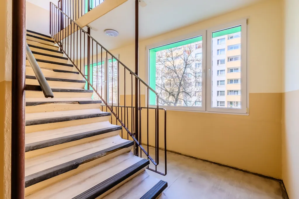Dům prošel celkovou rekonstrukcí – nové stoupačky v plastu, modernizované rozvody vody a odpadů, nový výtah a revitalizované společné prostory.