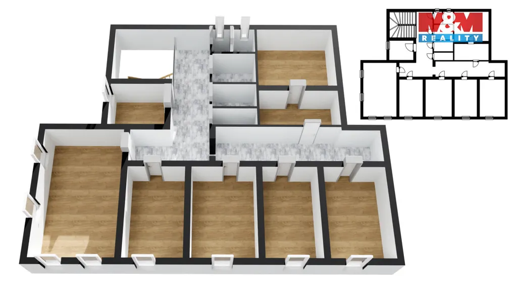Cihlová stavba se 3 nadzemní podlaží + podzemní podlaží, užitná plocha 386 m², celkem 10ti místnostmi, s velkou prostornou společenskou místnost ve spodní části budovy. Stavba má po rekonstrukci rozvody topení, vody a zároveň i elektřinu v některých částech. S pozemkem o velikosti