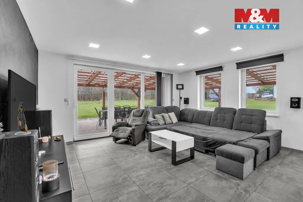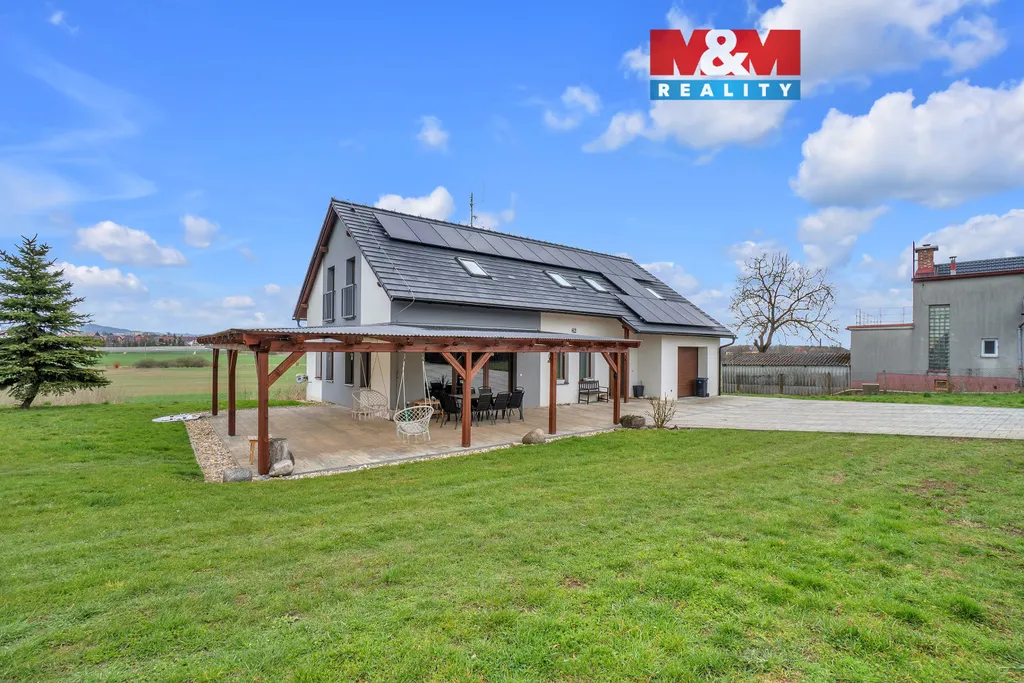 Prodej moderní novostavby rodinného domu 6+kk (užitná plocha 225 m²) v klidné části obce Čejkovice u Jičína (katastrální území Podhradí u Jičína). Dvoupodlažní samostatný cihlový dům na pozemku o výměře 1 194 m². Přízemí: zádveří, chodba, prádelna, koupelna 7 m², samostatné WC, pokoj pro hosty 12 m², obývací pokoj s kuchyňským koutem 38 m², špíz, garáž 25 m². V patře 4 ložnice, šatna 9 m² a koupelna s WC 12 m². Topení tepelným čerpadlem a fotovoltaika s velmi nízkými náklady na energie. Součástí prodeje je terasa 19 m². Výborné spojení a klidné prostředí na okraji obce nedaleko Jičína.