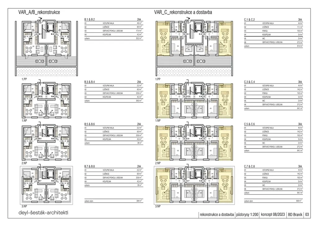 - 6+ pokojů v každém domě