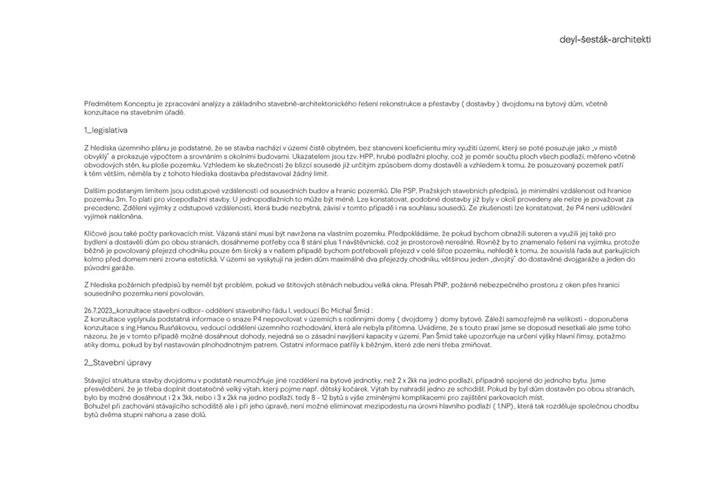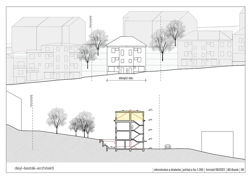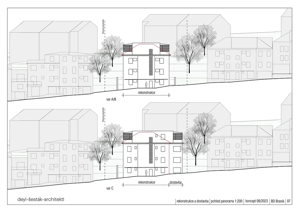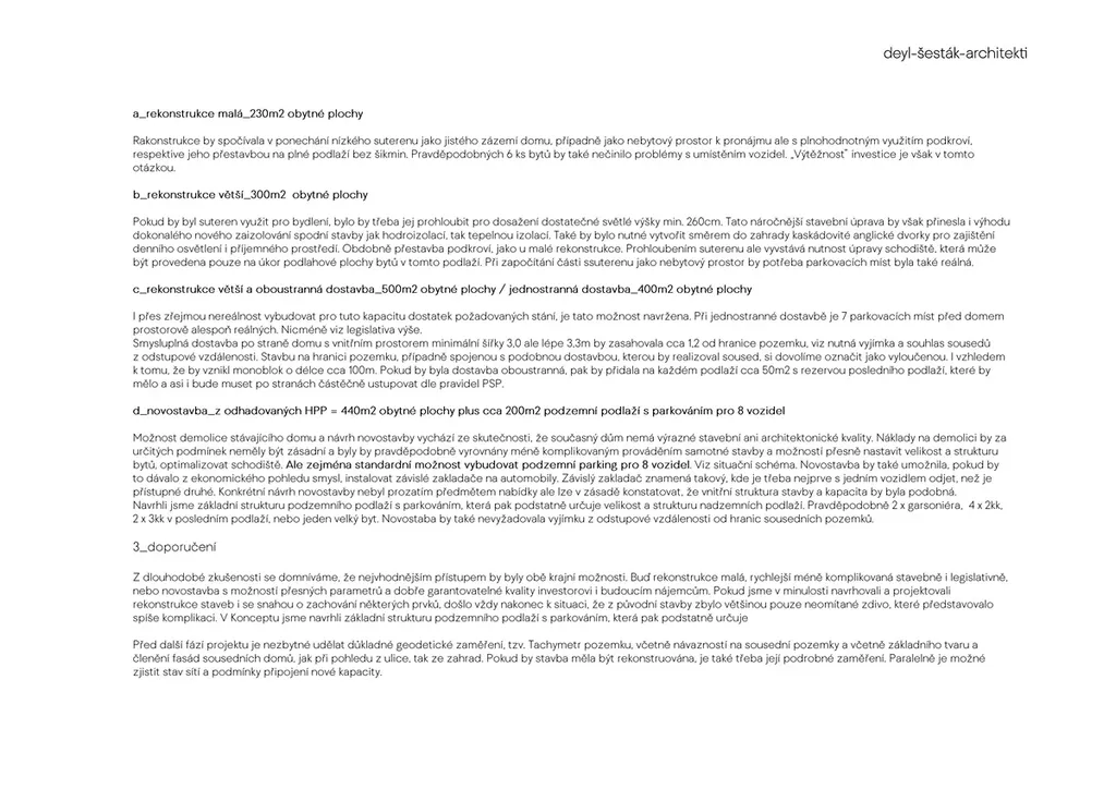Součástí nabídky jsou rovněž architektonické studie na rekonstrukci či dostavbu, které dávají jasnou představu o budoucím potenciálu objektu.