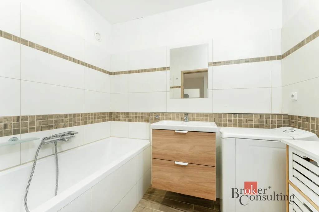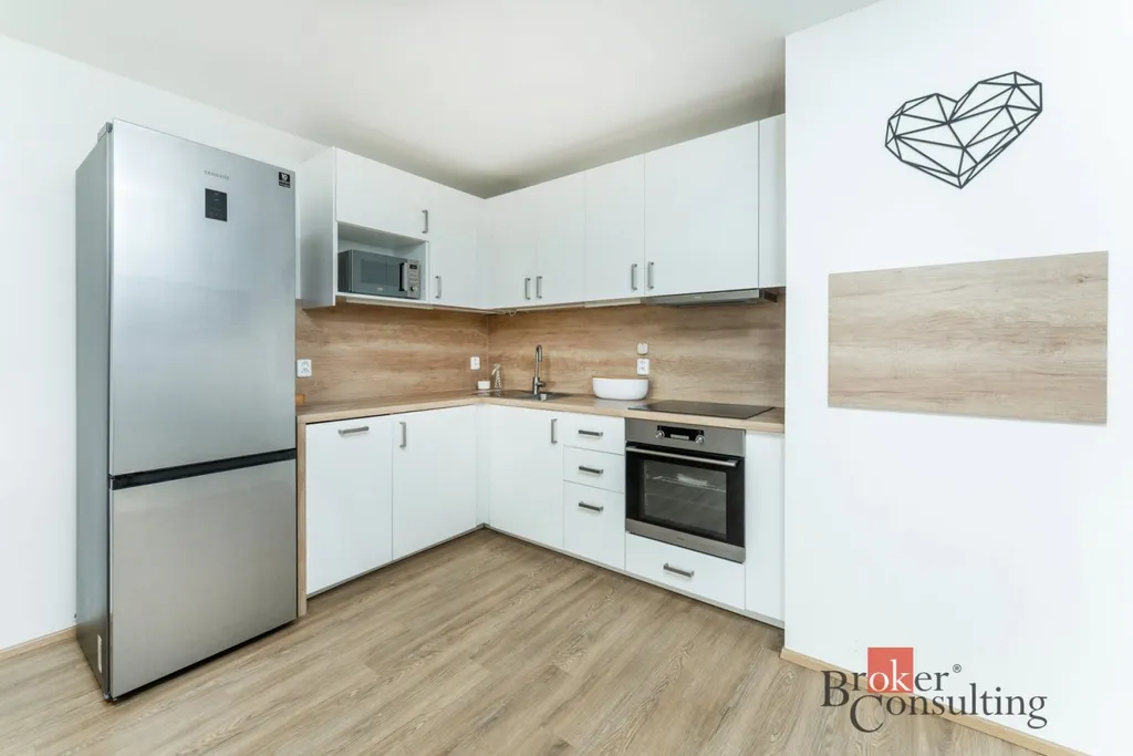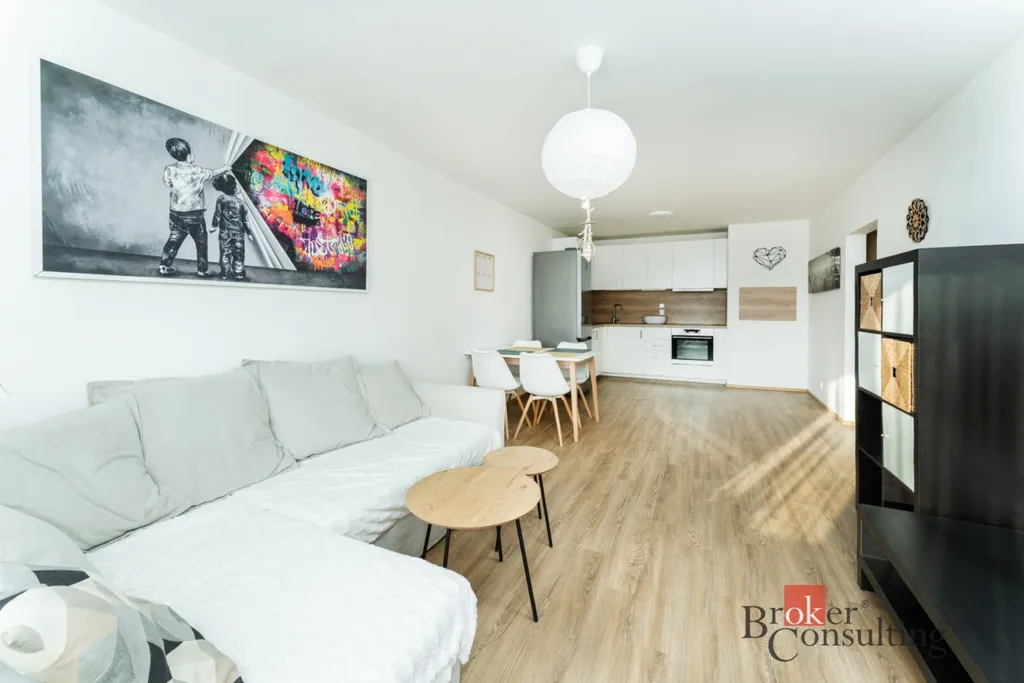 Jednotka o velikosti 72m2 zahrnuje prostornou vstupní chodbu s velkou vestavěnou šatní skříní, koupelnu s vanou, oddělenou toaletu, ložnici a obývací pokoj s kuchyňským koutem. Třetí místnost je využitelná např. jako pokoj pro hosty, pracovna či odkládací prostor. Byt je částečně vybavený, vybavení, které je součástí fotogalerie, je možné ponechat pouze na základě domluvy s předchozím nájemníkem.