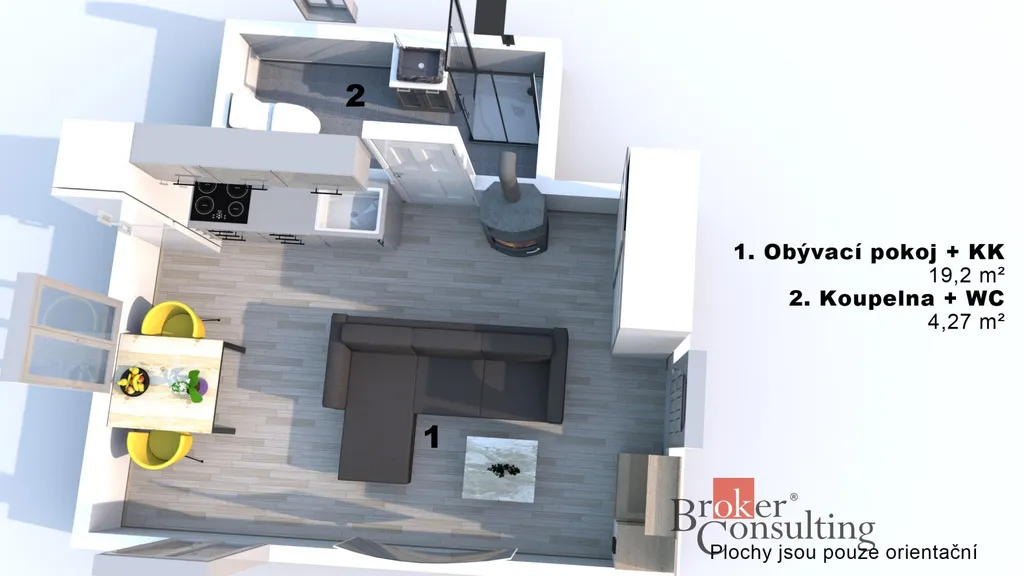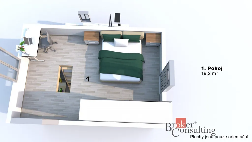 Uvedené výměry jsou orientační. Veškeré zveřejněné údaje mají pouze informativní charakter a nepředstavují nabídku ve smyslu § 1731 nebo § 1732 občanského zákoníku, ani veřejný příslib dle § 1733 občanského zákoníku.