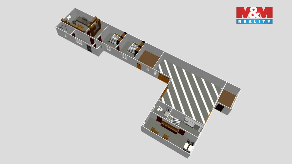 Dům je jednopodlažní, smíšené konstrukce, s dispozicí 3+1 a samostatným vejminkem 2+kk, který je vhodný pro vícegenerační bydlení, hosty nebo pronájem. Součástí nemovitosti je také stodola a bývalé chlévy, které rozšiřují možnosti využití – například pro dílnu, skladování nebo hospodaření.
