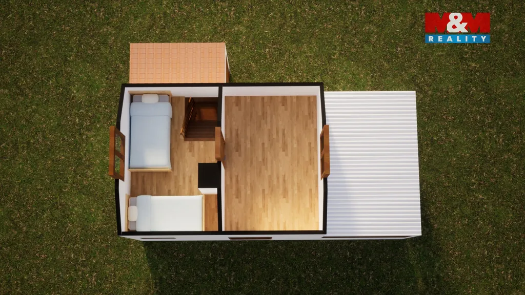 Chata je v dobrém a udržovaném stavu, je částečně podsklepená, její součástí je prosklená terasa, která přímo vybízí k posezení s výhledem do zeleně. V přízemí najdete obytnou část a po schodech v patře se nacházejí dva útulné pokojíčky vhodné na spaní. Chata je ideální na rekreační využití, ale lze ji využít i na trvalé bydlení či na krátkodobé pronájmy, například přes Booking.