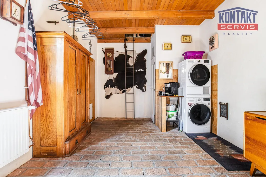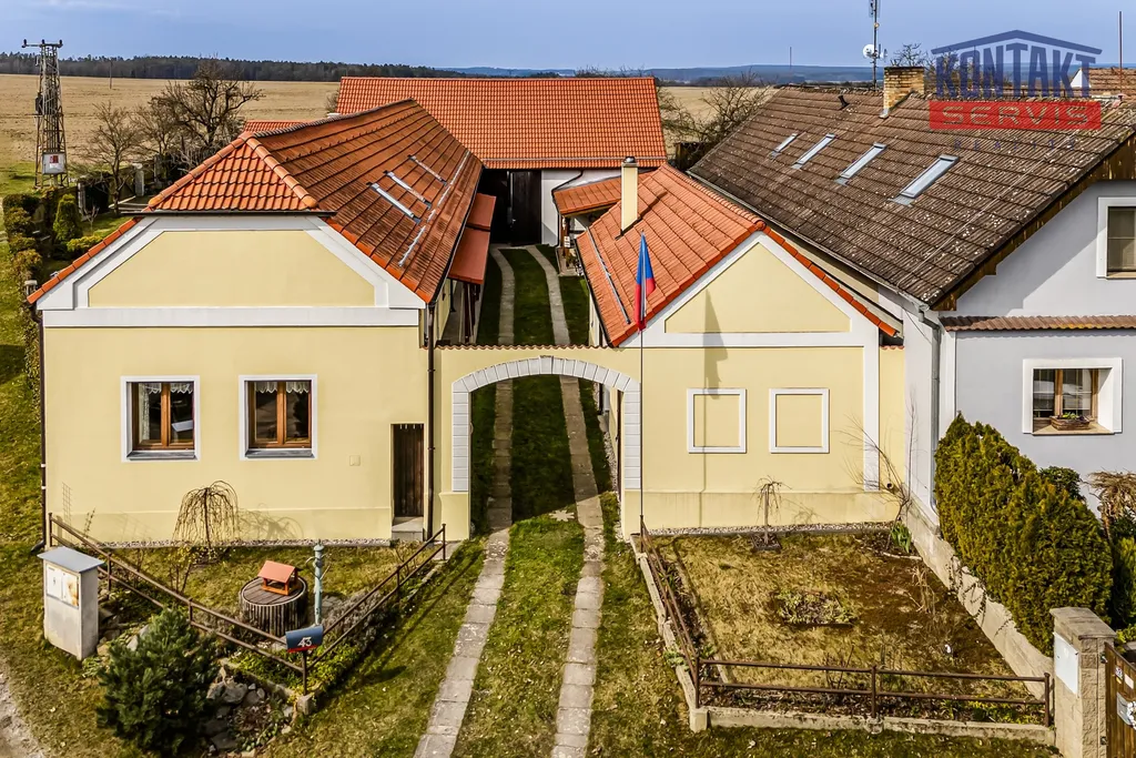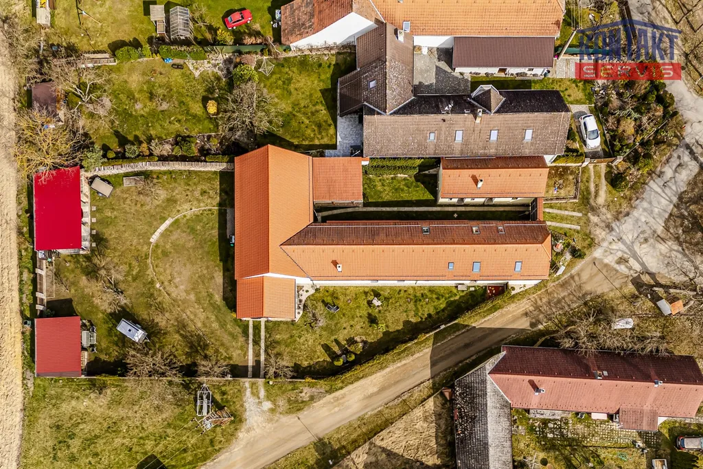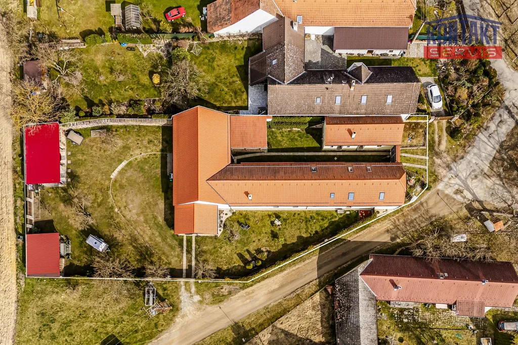 Nabízíme ke koupi kompletně rekonstruovanou vesnickou usedlost v obci Dunajovice, která se nachází necelých 6 km od lázeňského města Třeboň a 20 minut jízdy od jihočeské metropole. Hlavním obytným prostorem je samostatná jednotka o dispozici 5 + kk, přičemž v přízemí se nachází velký obývací pokoj spojený s kuchyní, samostatná ložnice a prostorná koupelna. V podkroví jsou pak tři pokoje a druhá koupelna se sprchovým koutem a toaletou. V hlavní budově na obytnou část navazují další prostory, které lze buď využít jako technické zázemí domu nebo je zde možno vybudovat další bytové jednotky (veškeré přípravy rozvodů jsou provedeny). V uzavřeném dvoře se nachází krásná pergola a samostatně stojící vejměnek s navazující kotelnou. Půdorys stavení uzavírá prostorná a průjezdná stodola. Za domem je k využití rozlehlá udržovaná zahrada s vedlejšími stavbami (krytá parkovací stání pro tři auta, kolna, přístřešek na dřevo apod.). Dům je napojen na obecní vodovod a kanalizaci, k dispozici je i vlastní studna. Zavedena je také elektřina 230/400 V. Vytápění je zajištěno vlastním kotlem na dřevoplyn s rozvodem do podlah nebo radiátorů. Celková výměra pozemků činí 1 633 m². Tato výjimečná nabídka je vhodná pro ty, kteří touží po velkém historickém stavení v novém kabátě. Podrobnosti k zakázce a osobní prohlídku Vám rádi zprostředkujeme.