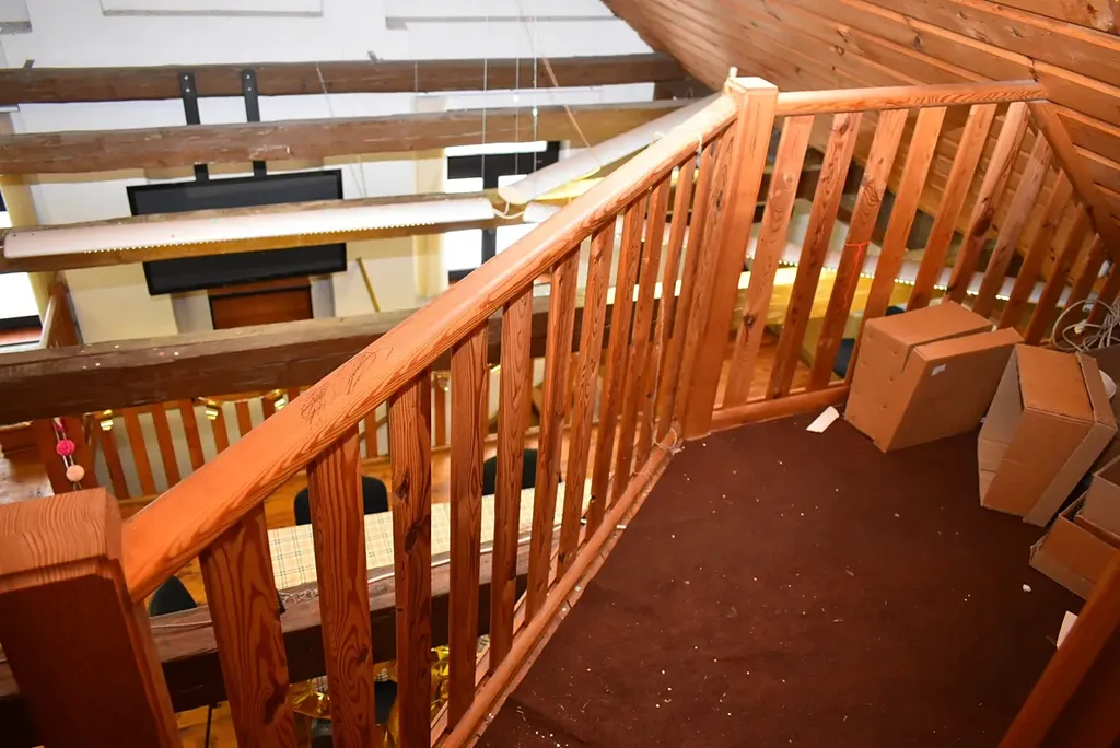 V patře se nachází stylová místnost s barem a kuchynkou. Zde se dají točit různé nápoje a připravovat různé dobroty. Je zde i místnost pro různé hry a WC dámské a pánské. Součástí je i galerie s pěkným výhledem na oslavence.