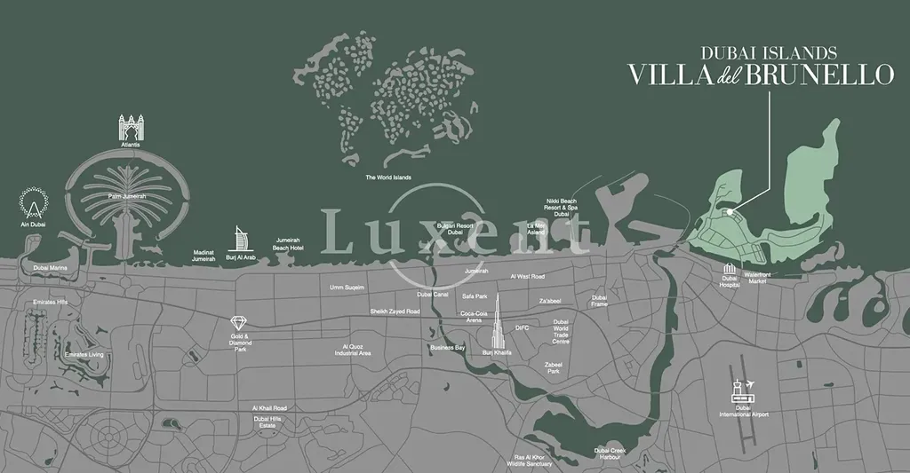 Lokalita Dubai Islands se nachází na severu Dubaje, v bezprostřední blízkosti leží čtvrť Deira s tradičními trhy i moderními nákupními centry. Rychlé silniční spojení zajišťuje pohodlný přístup do centra města, na mezinárodní letiště, k prestižním mezinárodním školám i špičkovým zdravotnickým zařízením.