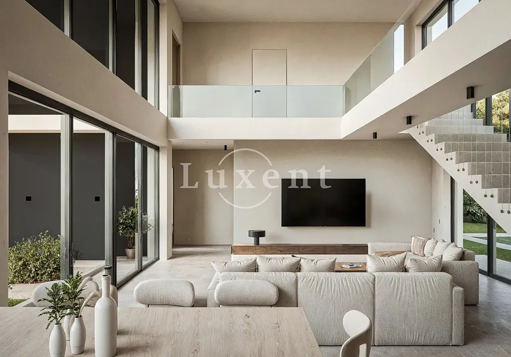 Přízemí disponuje ložnicí s vlastní koupelnou, obývacím pokojem propojeným s jídelnou a kuchyní a vstupem na venkovní terasu. Je zde technické zázemí objektu a úložné prostory. V 2.NP jsou tři další ložnice, z nichž každá disponuje vlastní koupelnou a vstupem na prostornou terasu s výhledem na moře. Střešní terasa nabízí prostor k relaxování a trávení času s přáteli a rodinou, s překrásnými výhledy na celé pobřeží a možností umístění zde vířivky. Na zahradě je k dispozici vyhřívaný bazén.