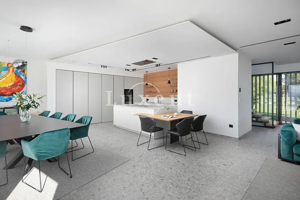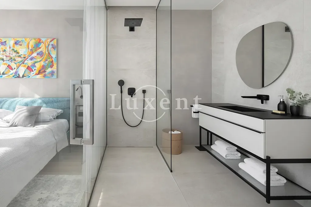 Vila je zařízena designovým nábytkem a špičkovým vybavením včetně výtahu a systému chytré domácnosti. Každý detail byl pečlivě promyšlen, aby vytvořil dokonalou atmosféru, která doplňuje luxusní prostředí a estetiku tohoto krásného domova.