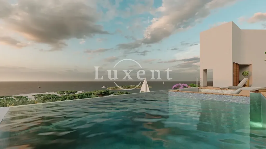 Vila o čisté obytné ploše 192 m2 je rozmístěna na třech úrovních s elegantním minimalistickým interiérem. Přízemí zahrnuje tři komfortní ložnice, každá s vlastní koupelnou a soukromou terasou. Přímý přístup na zahradu podporuje harmonické propojení vnitřního a venkovního prostoru. Je zde světlý obývací pokoj s dechberoucím panoramatickým výhledem na moře. Součástí je také čtvrtá ložnice s vlastní koupelnou a terasou. Exteriér doplňuje prostorná terasa s infinity bazénem. Druhé patro disponuje moderní kuchyní s jídelním koutem co plynule navazuje na velkorysou střešní terasu.