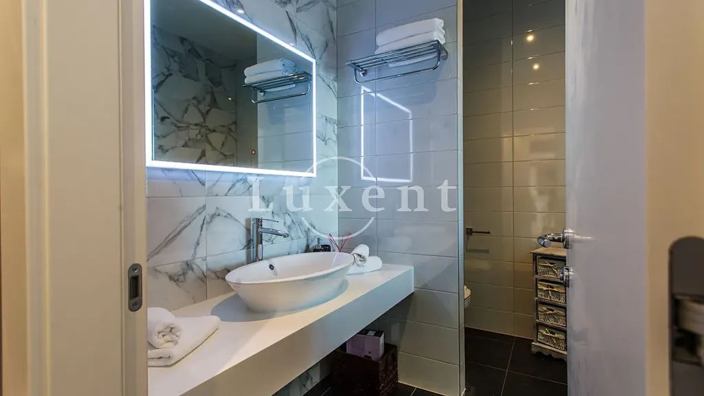 Interiér vily nabízí luxusní a prostorné pokoje, které jsou zařízeny moderním nábytkem a vybaveny špičkovými technologiemi. Každý pokoj disponuje vlastní koupelnou, čímž je zajištěno maximální soukromí a komfort pro všechny obyvatele. Vila je členěna do suterénu, přízemí a prvního patra.