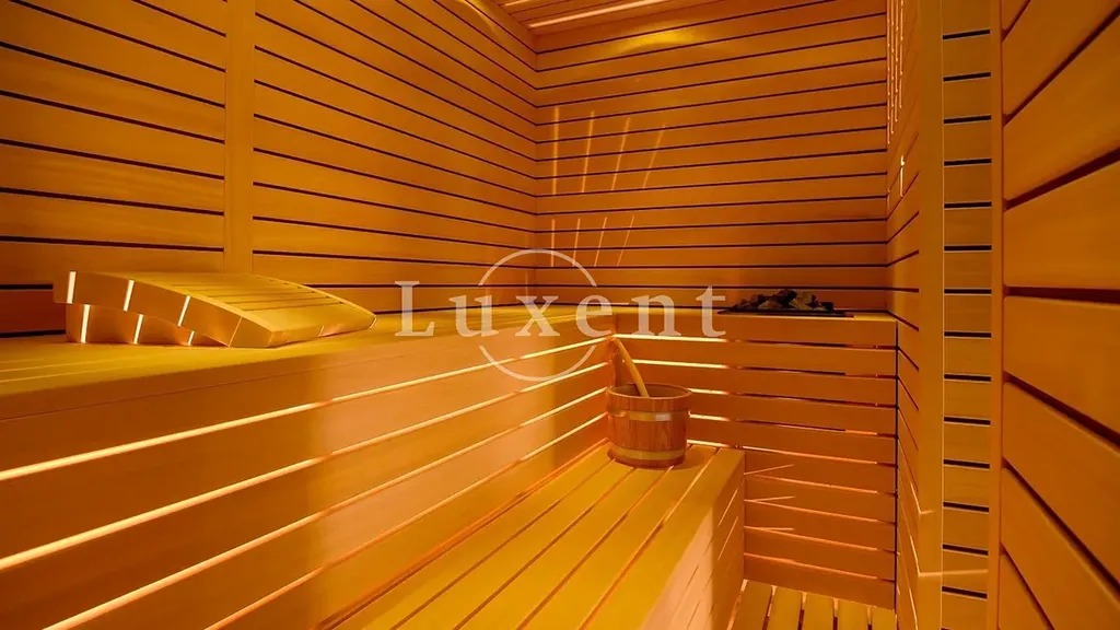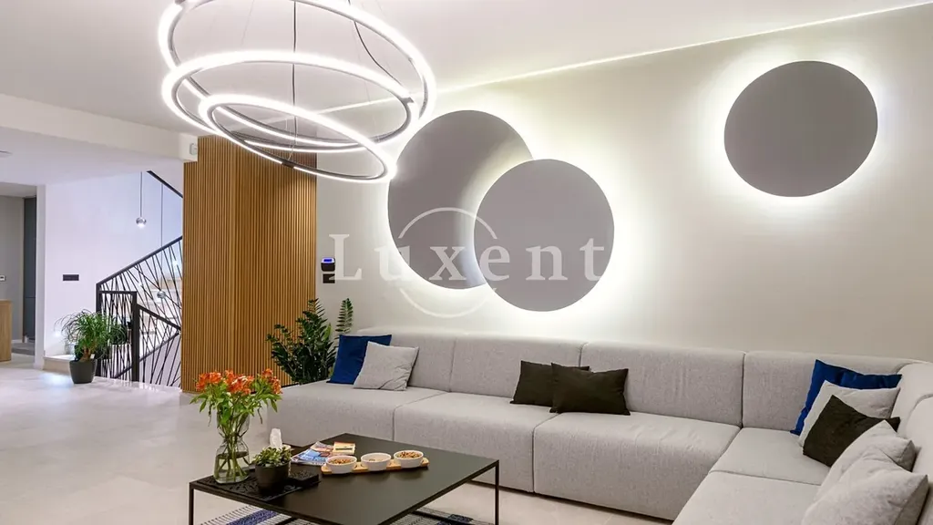 Tato moderní vila o užitné ploše 370 m2 stojí na pozemku o velikosti 750 m2 a rozprostírá se na třech podlažích. V suterénu najdete plně vybavenou posilovnu, saunu se sprchou, koupelnu a prádelnu. Přízemí nabízí otevřený koncept s kuchyní, jídelnou a prostorným obývacím pokojem s velkými prosklenými stěnami, které propojují interiér s terasou a upravenou zahradou. Venkovní část disponuje vyhřívaným bazénem, sluneční terasou, venkovní kuchyní s grilem a dětským hřištěm. V patře jsou čtyři komfortní ložnice s vlastními koupelnami – dvě se sprchami a dvě s vanou.
