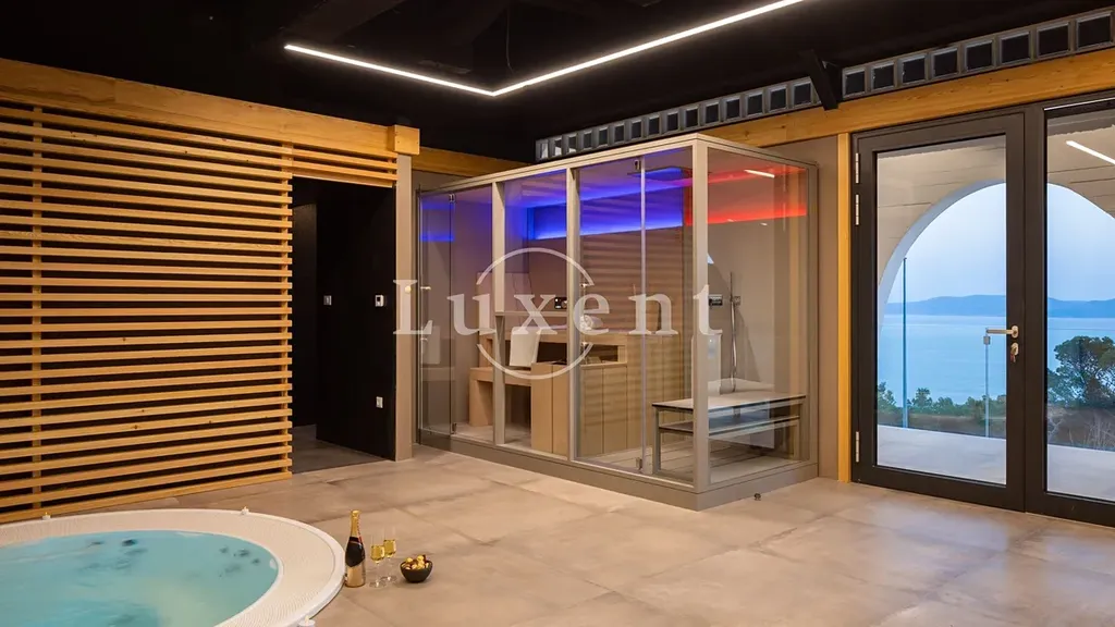 V prvním nadzemním podlaží je promyšlená wellness zóna, která zahrnuje vstupní halu, posilovnu, saunu, tropickou sprchu, hydromasážní vířivku a relaxační místnost. Velká terasa s výhledem na moře dodává celému prostoru výjimečnou atmosféru.