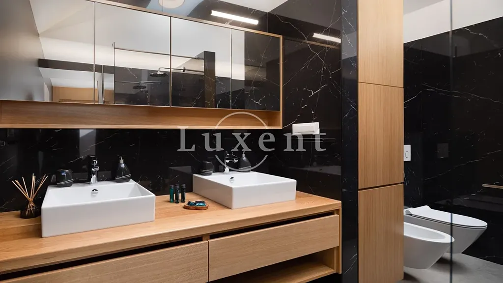 Vila byla postavena na pozemku o rozloze 861 m2 a její celková obytná plocha činí 298 m2. Díky své poloze v klidné, málo frekventované oblasti poskytuje absolutní soukromí a nerušený komfort. Elegantně řešený interiér je rozvržen do čtyř podlaží. V přízemí se nachází kryté parkovací stání až pro čtyři vozy, nechybí ani nabíjecí stanice pro elektromobily. Cela stavba je energeticky úsporná.