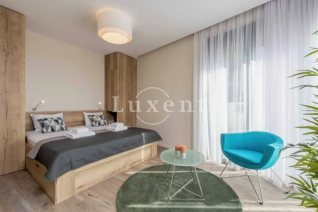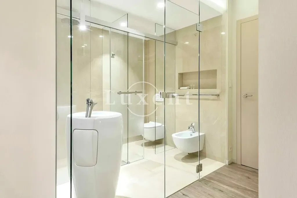 Byt se nachází ve druhém patře a díky orientaci na východ a jih je naplněn příjemným denním světlem. K dispozici je exkluzivní infinity bazén s relaxační zónou přímo v přízemí vily. Tato nemovitost představuje unikátní investiční příležitost díky své prestižní poloze u moře, která je ideální jak pro pohodlné bydlení, tak pro rekreační účely.