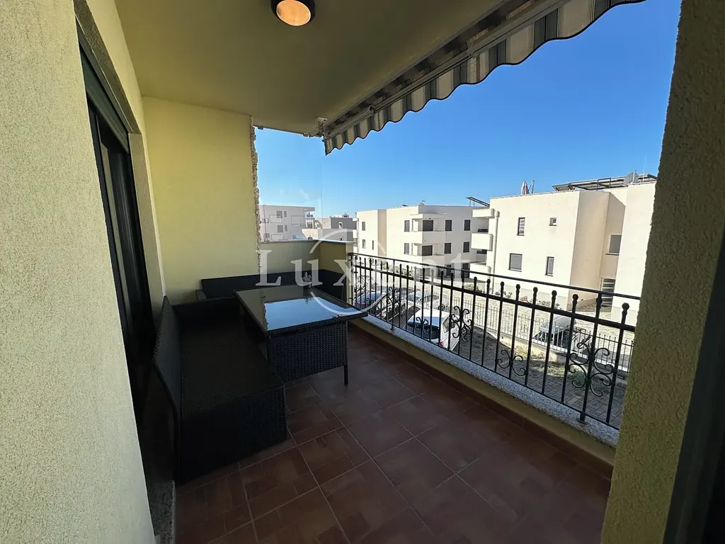Apartmán tvoří vstupní hala, dvě prostorné ložnice, obývací pokoj s jídelní částí, moderní kuchyně, koupelna a dvě toalety. Dominantou je velká slunná terasa, ideální pro odpočinek či večerní posezení. Součástí prodeje je i parkovací místo a samostatný sklad (není započítán do uváděné podlahové plochy). Kvalitní provedení doplňují okna z kombinace ALU, PVC a dřeva, klimatizace a promyšlené dispoziční řešení.