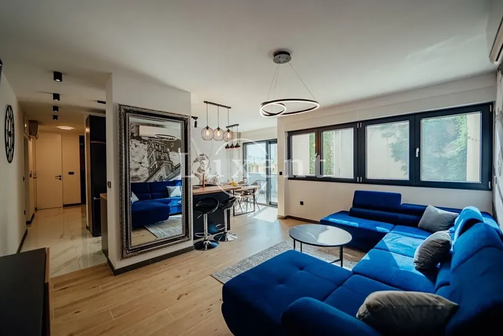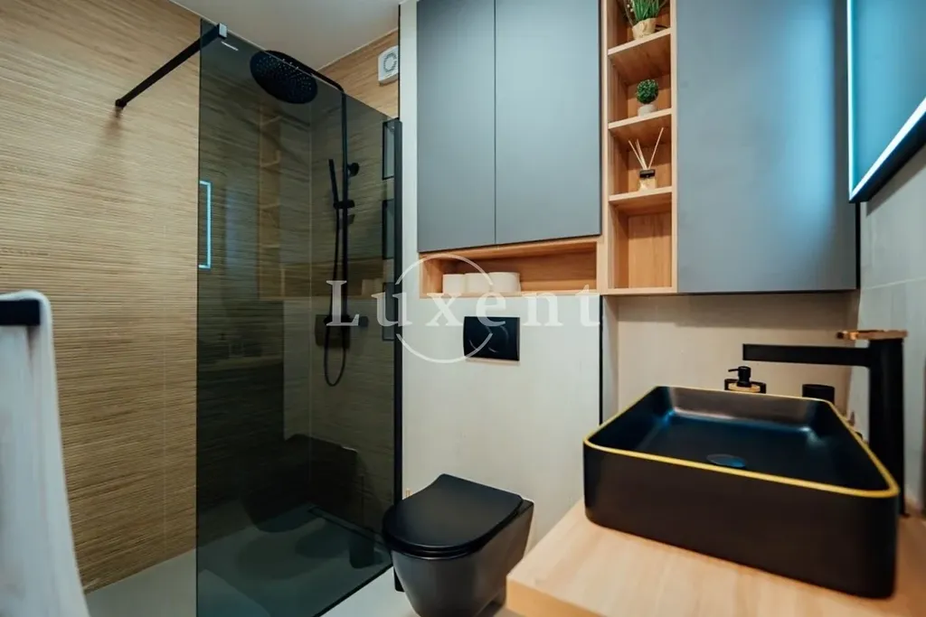 Nabízíme k prodeji luxusní a plně zařízený byt s terasou a garážovým stáním se nachází ve vyhledávané lokalitě na jižní straně města Split v chorvatské Dalmácii, jen 700 metrů od moře. Nabízí 66 m2 užitné plochy, dvě ložnice, dvě koupelny a prostorný obývací pokoj propojený s moderní kuchyní.