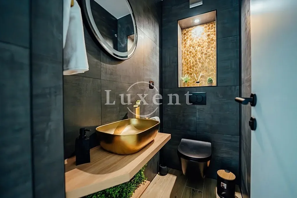 Interiér je vkusně a funkčně řešený s důrazem na kvalitní provedení a moderní vybavení. Byt se prodává kompletně zařízený a klimatizovaný, připravený k okamžitému užívání či pronájmu. Součástí je také slunná terasa ideální pro ranní kávu nebo večerní posezení. Je zde možnost dokoupení garážového stání přímo v objektu.