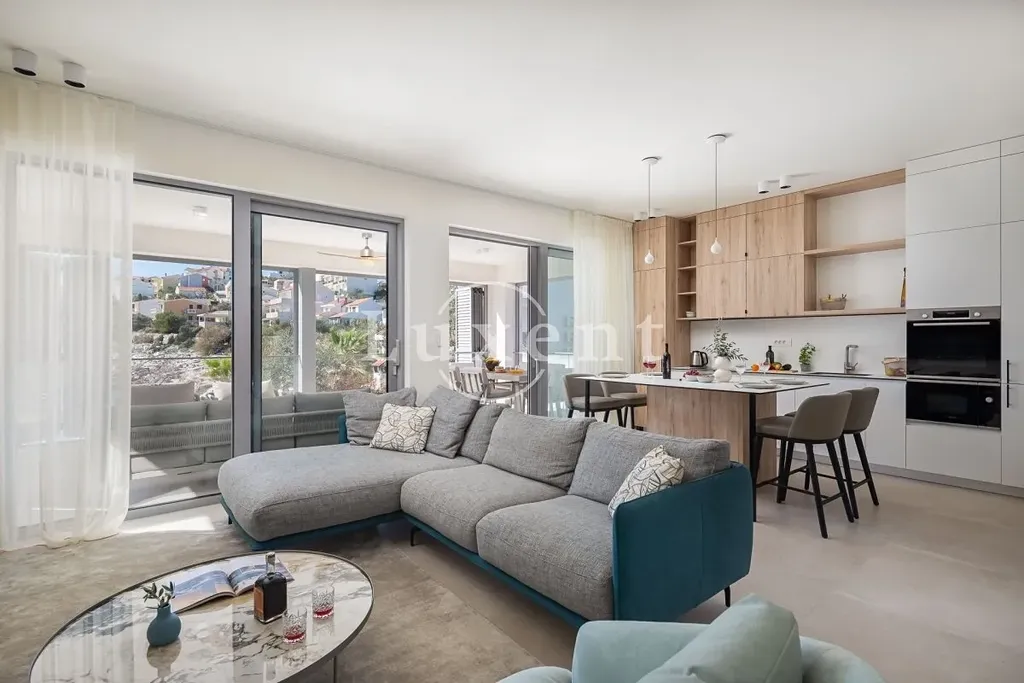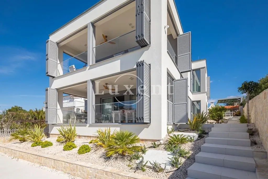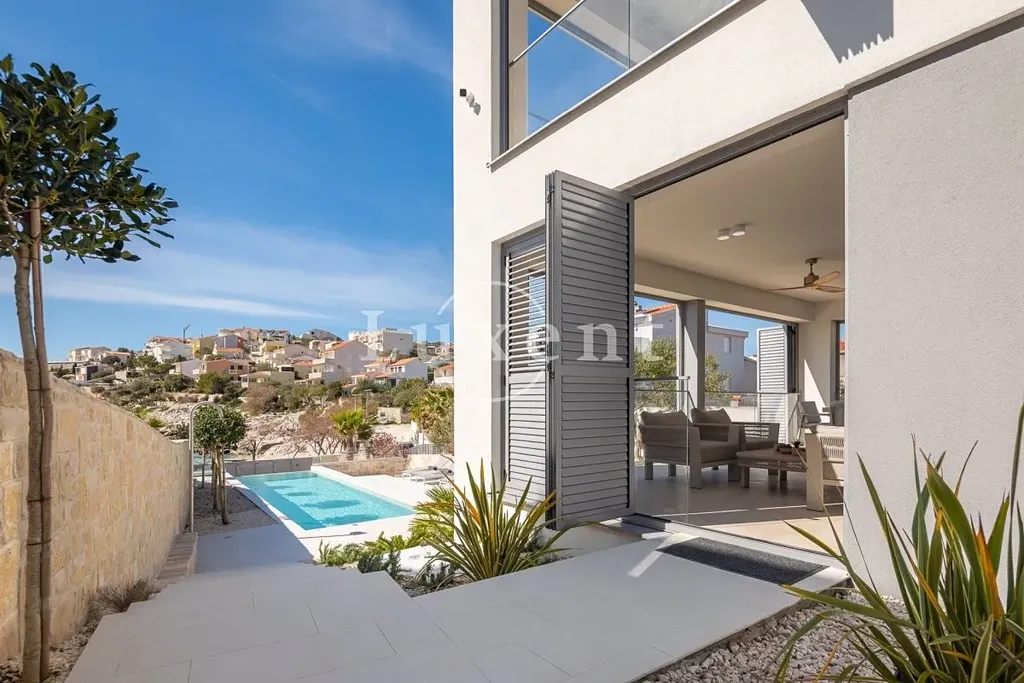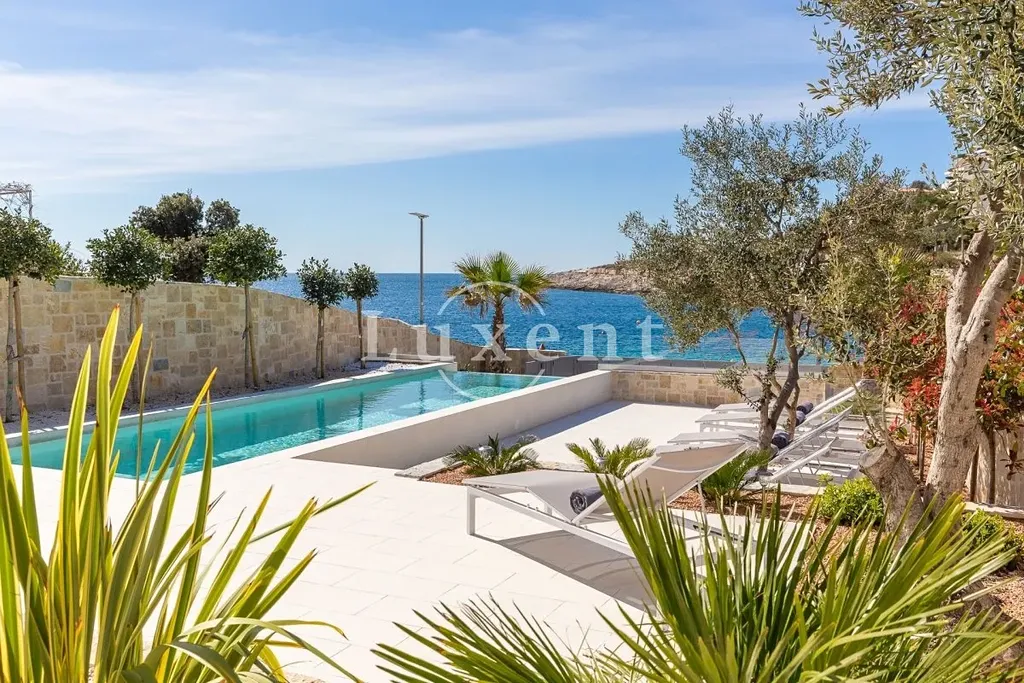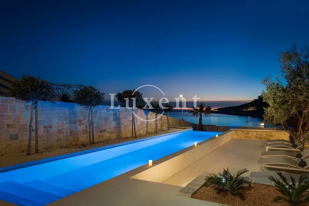 Nabízíme k prodeji nádhernou novostavbu vily s bazénem, situovanou v malém turistickém letovisku poblíž Rogoznice v první řadě u moře. Vila leží jen pár kroků od malebné přírodní oblázkové pláže a působivých kamenných útesů. Díky své jihozápadní orientaci si užijete celodenní slunce a dechberoucí západy.